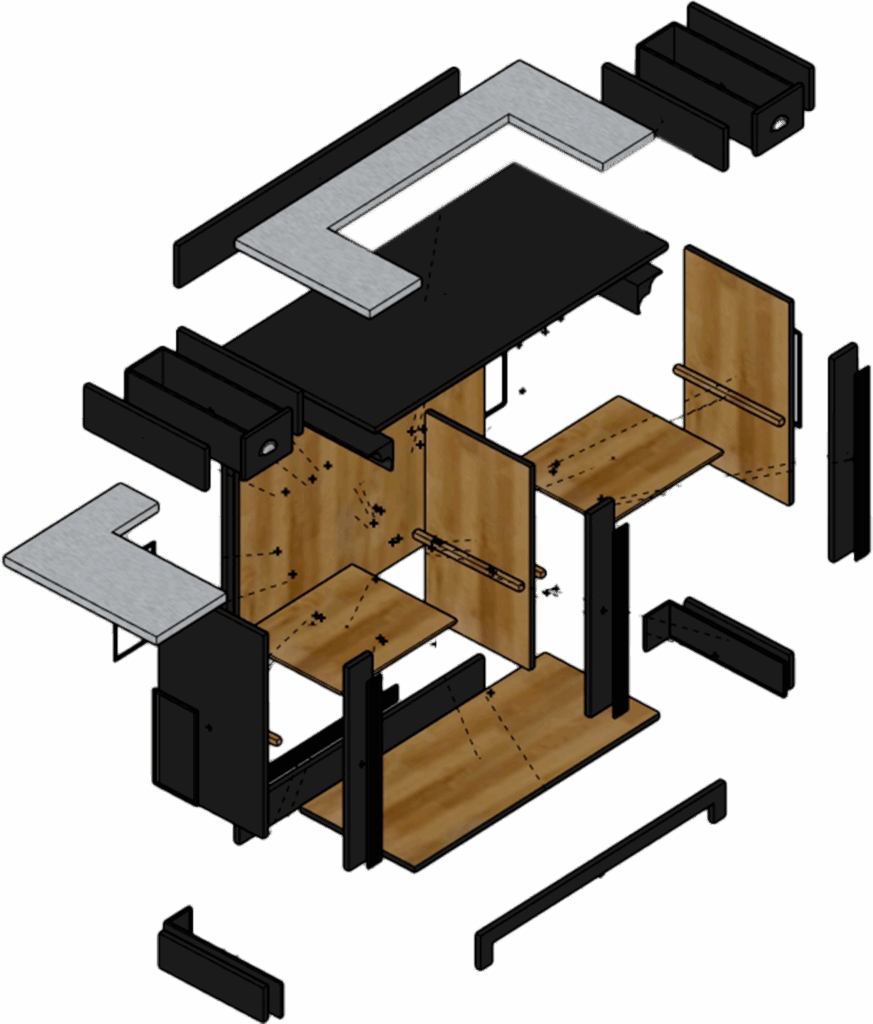 Mon rôle est de transformer une idée ou un concept en plans précis : coupes, élévations, détails de mobilier ou agencements sur mesure.